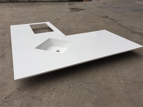 white Corian kitchen bathroom countertops with sink